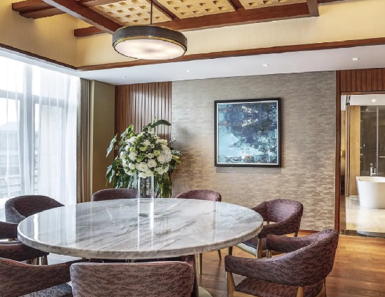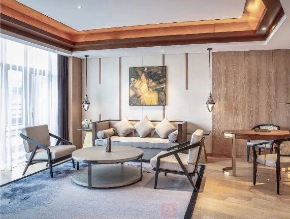 總統(tǒng)套房裝修精致低調(diào)奢華,充滿東方風(fēng)韻的木質(zhì)家具結(jié)合布藝,處處體現(xiàn)著高貴典雅的風(fēng)范。