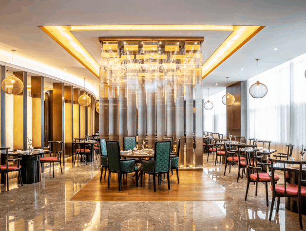 酒店含四間餐廳及酒吧,餐飲場(chǎng)所一應(yīng)俱全,一站翻牌多國(guó)美食。緯度全日制餐廳 、岳樺中餐廳、 松江味道特色餐廳為住客提供豐富多樣的國(guó)際美食、東北菜肴及經(jīng)典粵菜。冰凌吧位置開闊,閑暇之余可與知己好友、商務(wù)伙伴品茗喝酒,品嘗廚師精選的法式甜品。