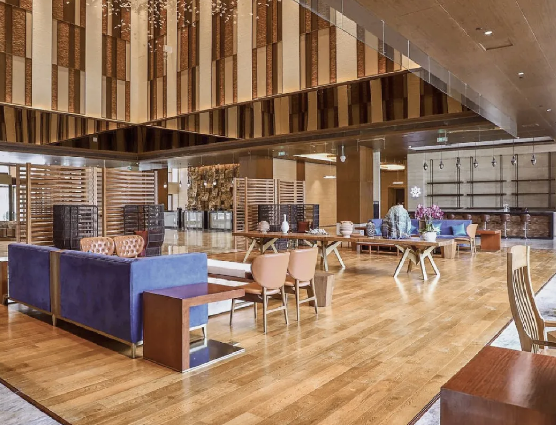 雅柏對(duì)酒店自然空間的創(chuàng)新結(jié)合,也純粹地用材質(zhì)配合形式來呈現(xiàn)出一種典雅簡(jiǎn)約的美感。