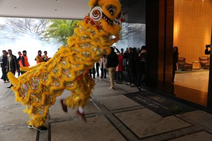 醒獅向主人送上新春的祝福和開工大吉的美好祝愿